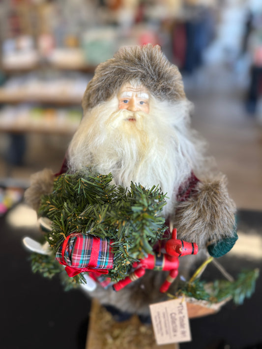 16" Handcrafted Santa Figurine with Fabric and Faux Fur