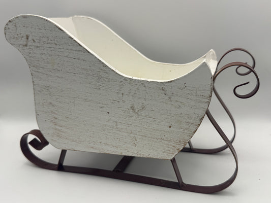 Distressed White Wooden Christmas Sleigh – Rustic Holiday Decor 9"