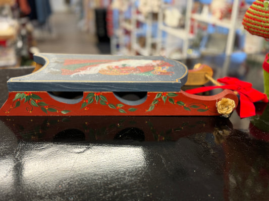 Hand-Painted Wooden Santa Sleigh Ornament – Rustic Old World Christmas Decor 19"