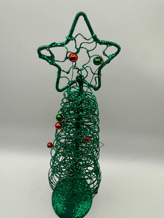 Green Spiral Wire Christmas Tree with Ornaments – 9" Holiday Decor