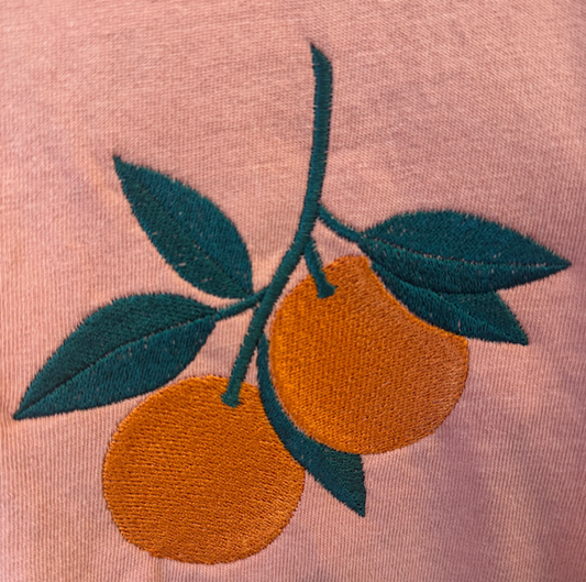 Locally Embroidered Graphic T-Shirt - Peaches Embroidered on Shirt
