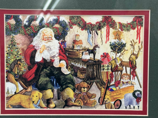 Peggy Abrams “Santa’s Workshop” Framed Art Print – Nostalgic Christmas Decor 11.5" x 9.5"