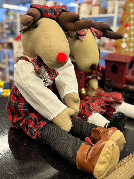 Plaid Moose/Reindeer Plush Christmas Decoration – 10" Holiday Shelf Sitter