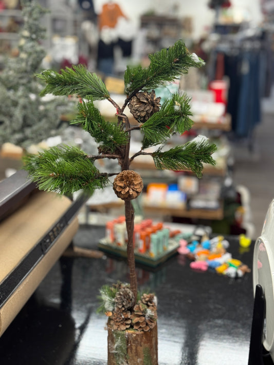 Tabletop Pinecone Christmas Tree with Natural Log Base – 24" Holiday Decor