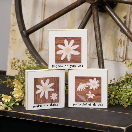 3/Set - Distressed Chunky Wooden White Daisy Sitter