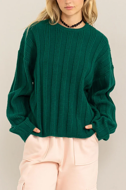 Wide Ribbed Round Neck Soft Long Sleeve Cozy Sweater