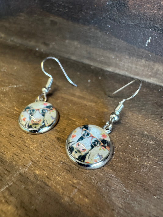 Handmade Aluminum & Glass Earrings - Cow with Glasses