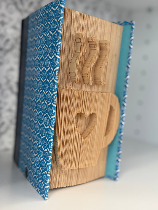 Folded Book Art - Steaming Coffee Cup / Heart (Cut Style)