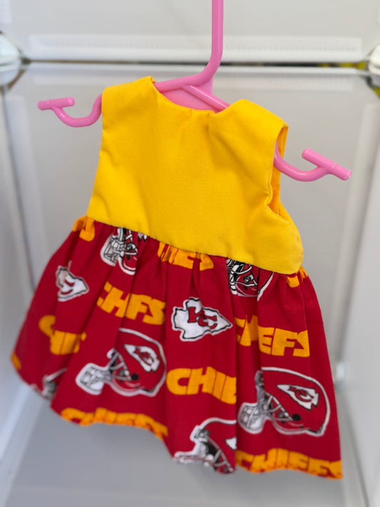 Handmade 18" Doll Clothes – Red & Gold Football-Inspired Dress with Matching Bow