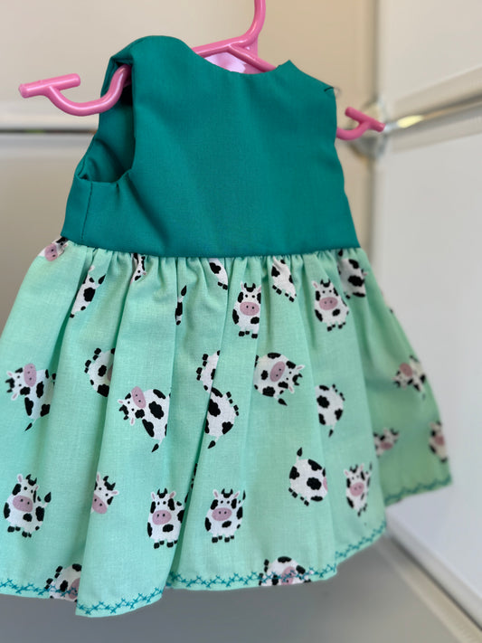 Handmade 18" Doll Clothes – Teal Cow Dress w/ Bow