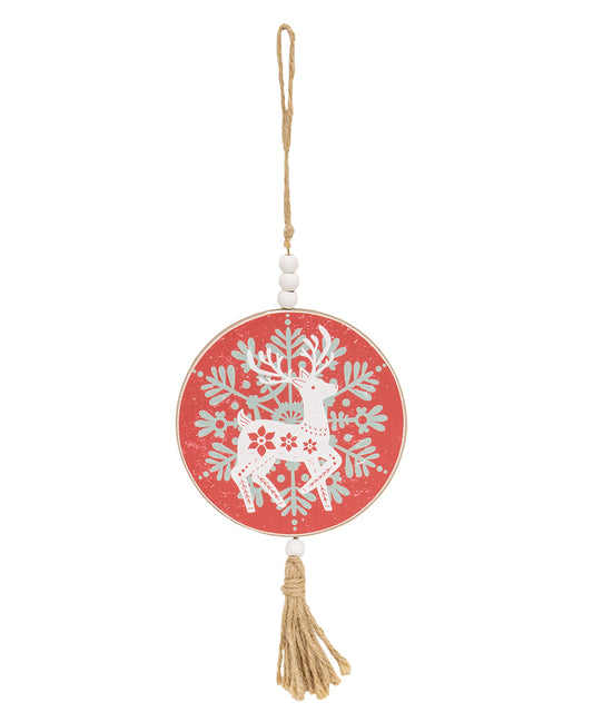 Yuletide Folklore Round Wooden Reindeer Ornament – 2 Assorted