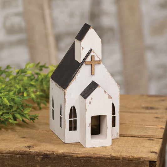 Distressed White Wooden Church Sitter