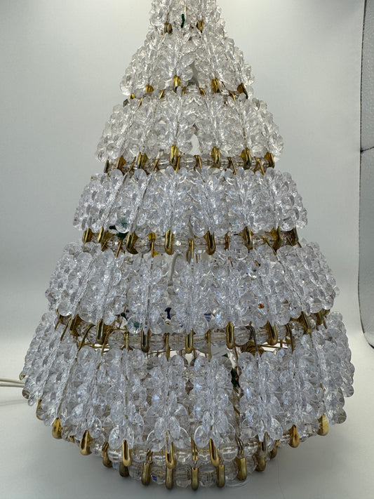 Vintage Safety Pin Christmas Tree – 13" Handmade with Clear Beads & Lights