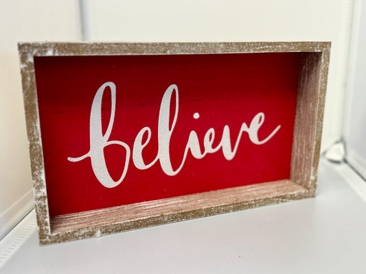 “Believe” Inset Wood Sign (9.5" x 5.5" x 1.25")