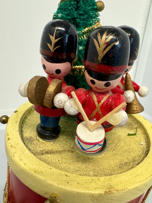 Vintage Wooden Drum with Toy Soldiers & Christmas Tree - Plays Silent Night