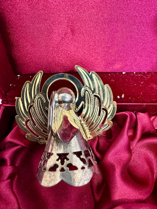 Vintage Brass & Silver Angel Ornament Set (4-Piece with Velvet Box)