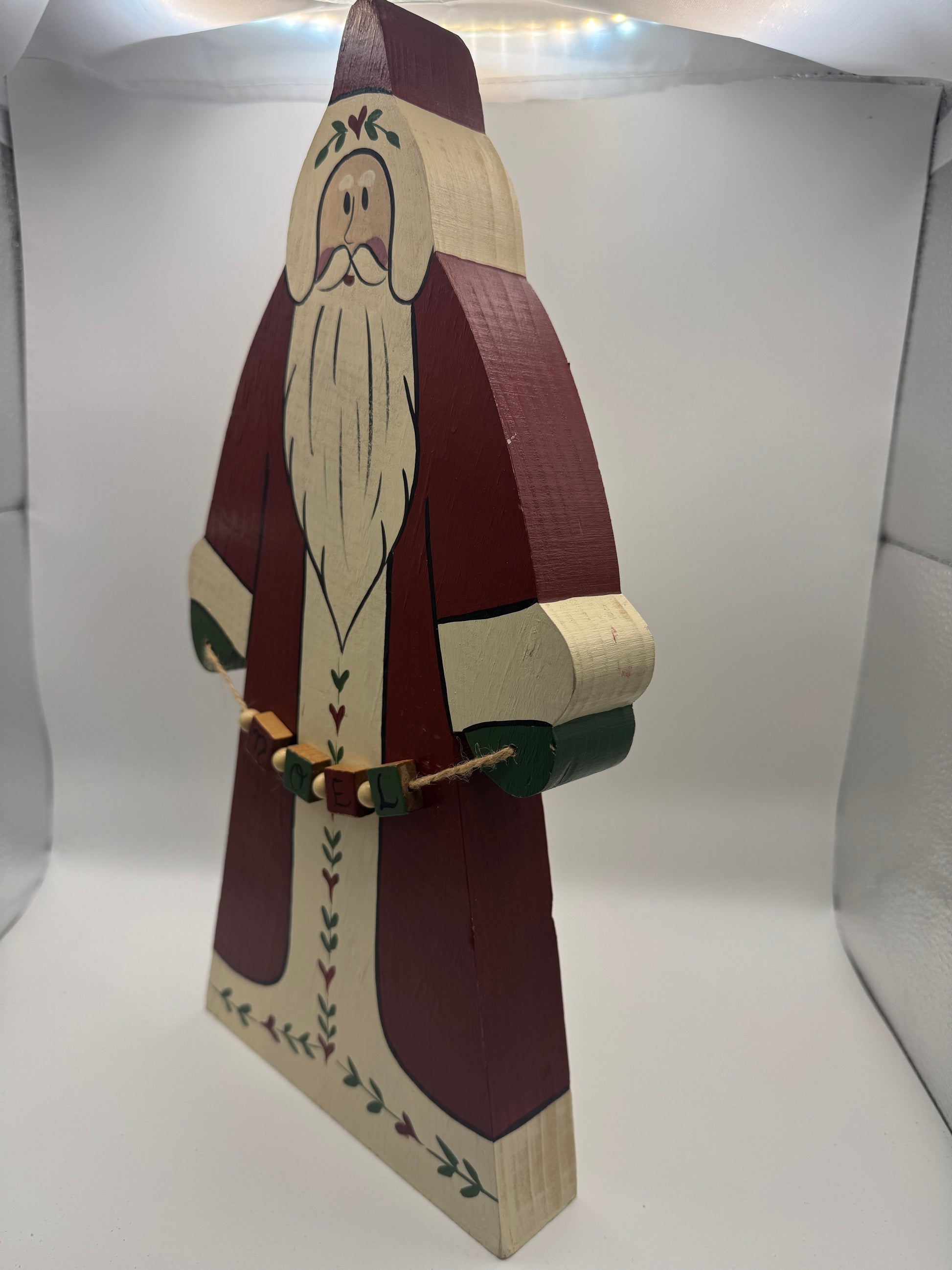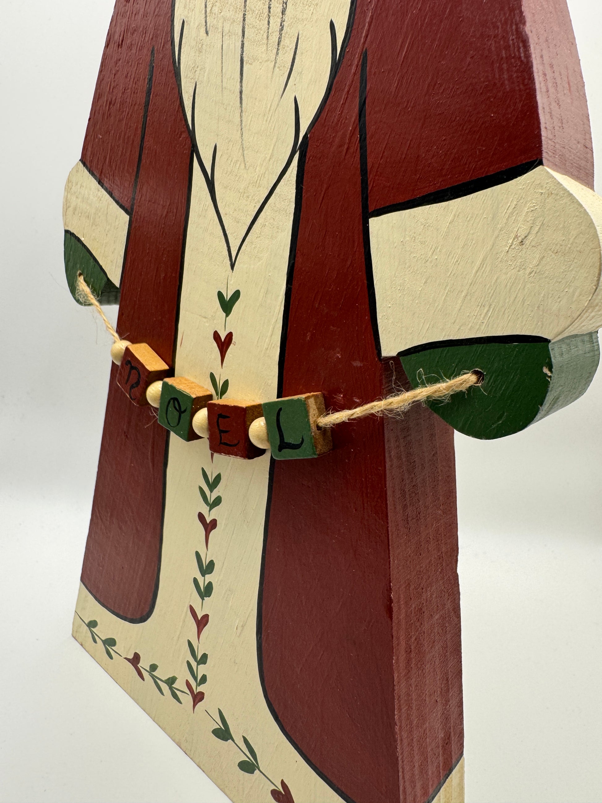 14" Wooden Folk Art Santa Figurine with “NOEL” Garland