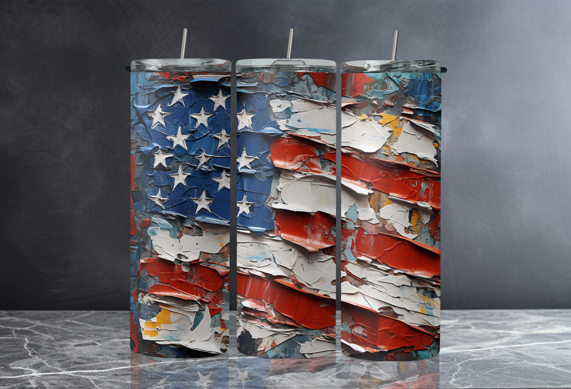 20 oz Skinny Tumbler - Painted Flag