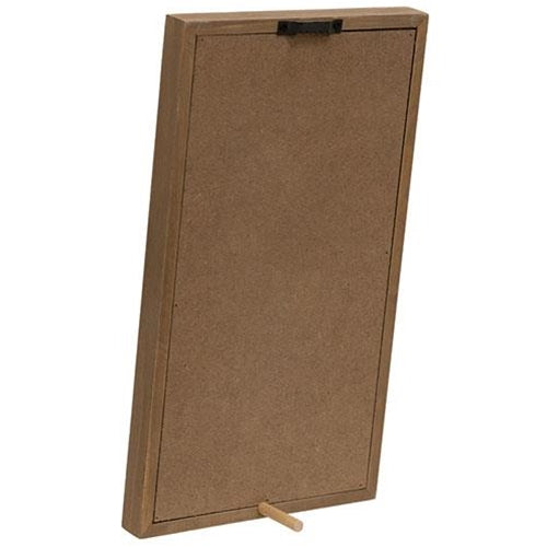 The A Child is Born Nativity Frame is a decorative wooden sign with a distressed ivory background held inside of a natural wood frame. The sign reads “A child has been born for us, a son is given to us; authority rests upon Him; and He is named Jesus. - Isaiah 9:6” in black lettering. The Bible verse is designed to acrostically spell out “Christmas” and the bottom of the sign features nativity silhouette artwork. The sign includes a sawtooth hanger and a wooden easel kickstand attachment, making this sign ideal for both wall and freestanding display. The sign brings an inspiring Christmas message into the home, pairing with a variety of styles and themes during the holiday season. Measures 10.5” high by 6” wide by .75” deep.
