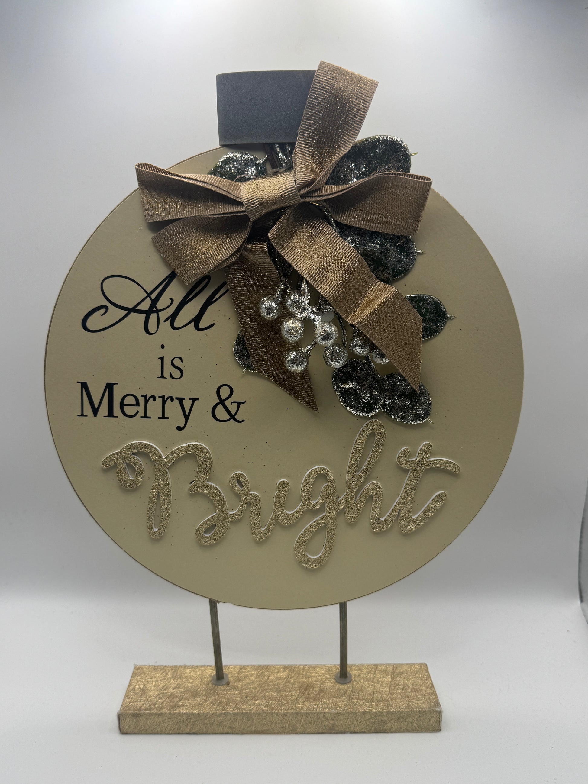 Add festive cheer to your home with this charming wooden “All Is Merry & Bright” Christmas sign.