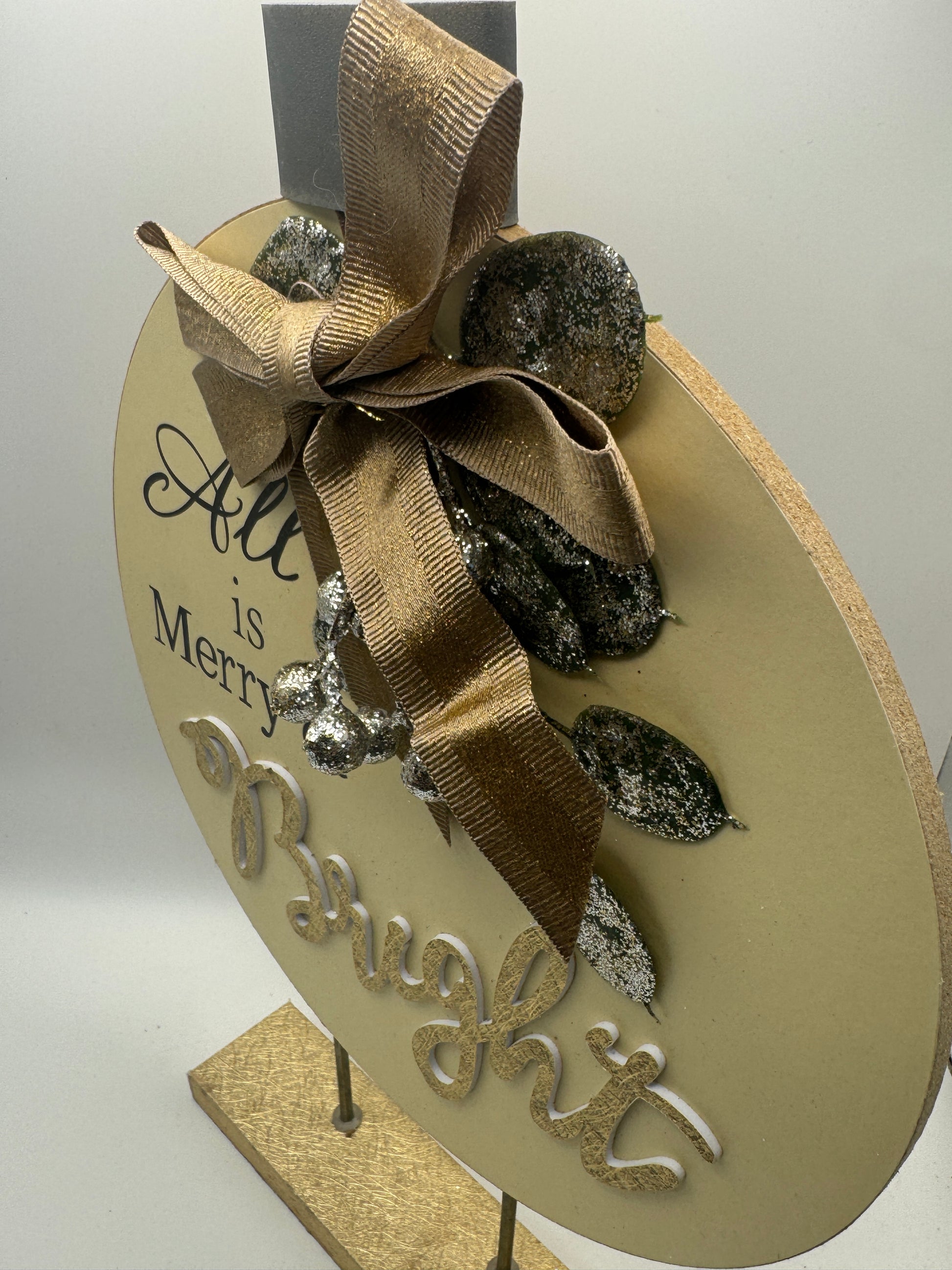 “All Is Merry & Bright” Wooden Christmas Sign – 12.5" Holiday Decor