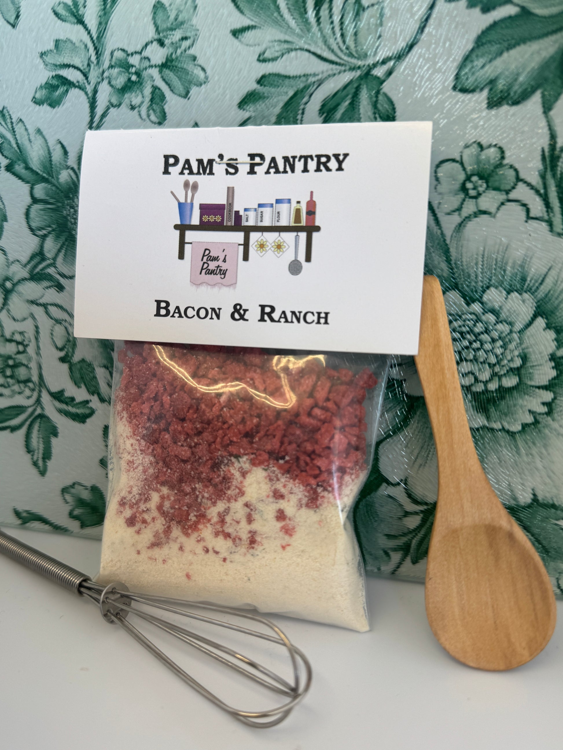 We’ve combined farm fresh sizzlin’ bacon with cool creamy ranch for a Bacon & Ranch treat that everyone is sure to love. This mixture is great on chips, crackers, salads, as a pasta salad or on burgers and sandwiches. Pack mixes with 1 cup sour cream and 1 cup mayo. Makes 2 cups.