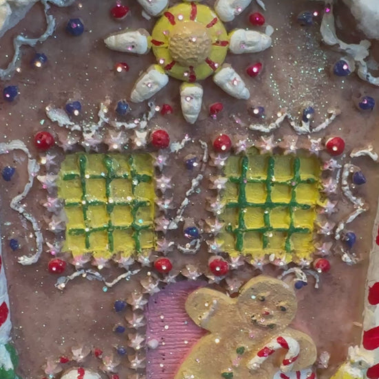 This Fiber Optic Gingerbread House brings classic Christmas charm to life with its colorful candy details, frosted icing trim, and a glowing fiber optic light display that shimmers through the windows and roof. Measuring approximately 11" tall x 9" wide x 12" deep, it’s the perfect statement piece for mantels, tables, or entryway displays.