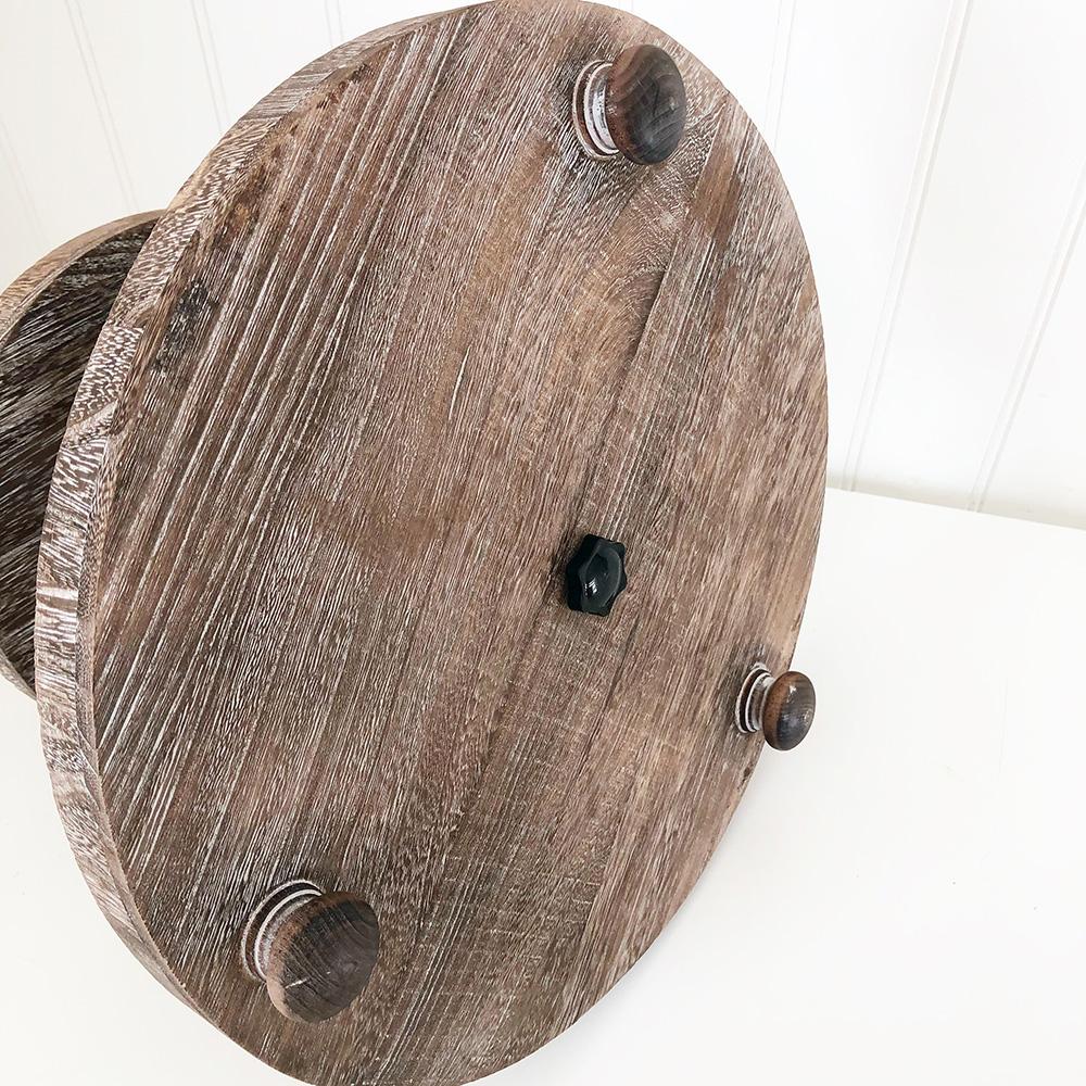 You will love this beautiful antique-finish wood tiered tray. Designed with generous proportions, the base is approximately 39% larger than standard trays, giving you plenty of space for seasonal décor, tiered tray sets, or everyday styling. The base tray measures 15 inches in diameter, with the top tray at 9.875 inches. Overall height is 18 inches. Easy to assemble in under 60 seconds—no tools required.