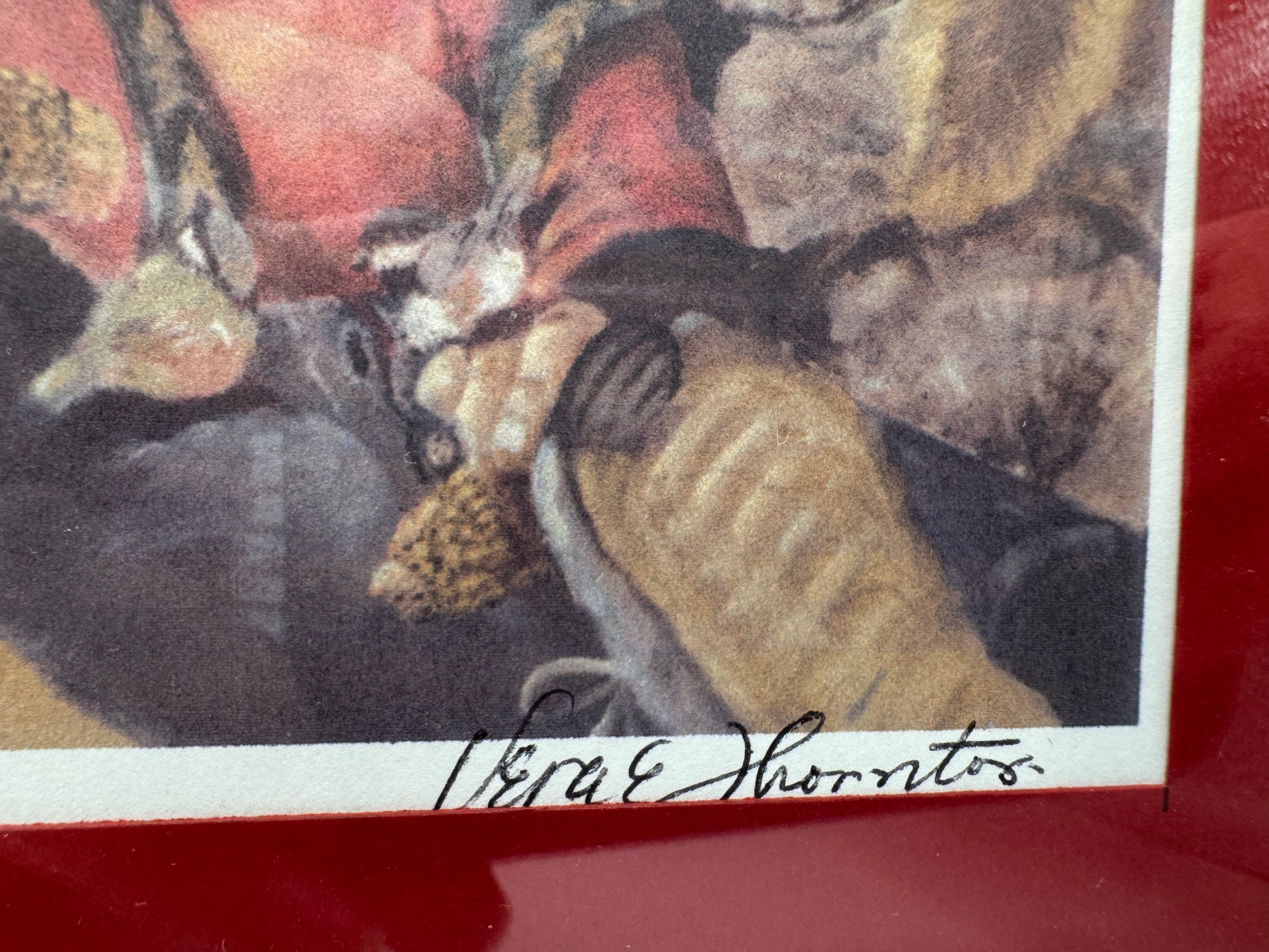 Thornton’s artistic style echoes that of 19th-century painter Sir Edwin Landseer, celebrated for his lifelike animal portrayals and gentle storytelling. The print includes both the artist’s signature (bottom right) and the title inscription (bottom left). Beautifully framed, this piece makes a thoughtful addition to rustic, cabin, or nature-inspired décor.