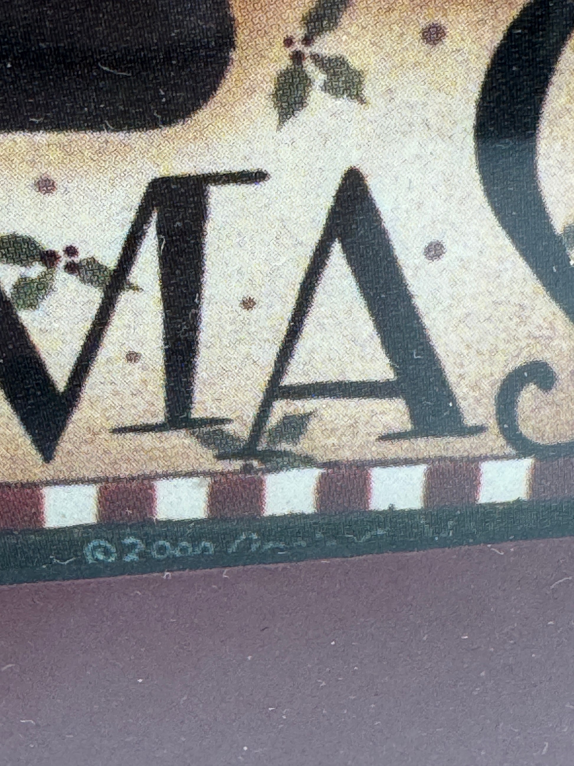 This framed Christmas artwork features a charming folk art–style depiction of Santa Claus with the words “Merry Christmas” displayed across the design. Rendered in a warm, stylized manner, the piece captures the nostalgic simplicity and handcrafted feel of traditional holiday décor.