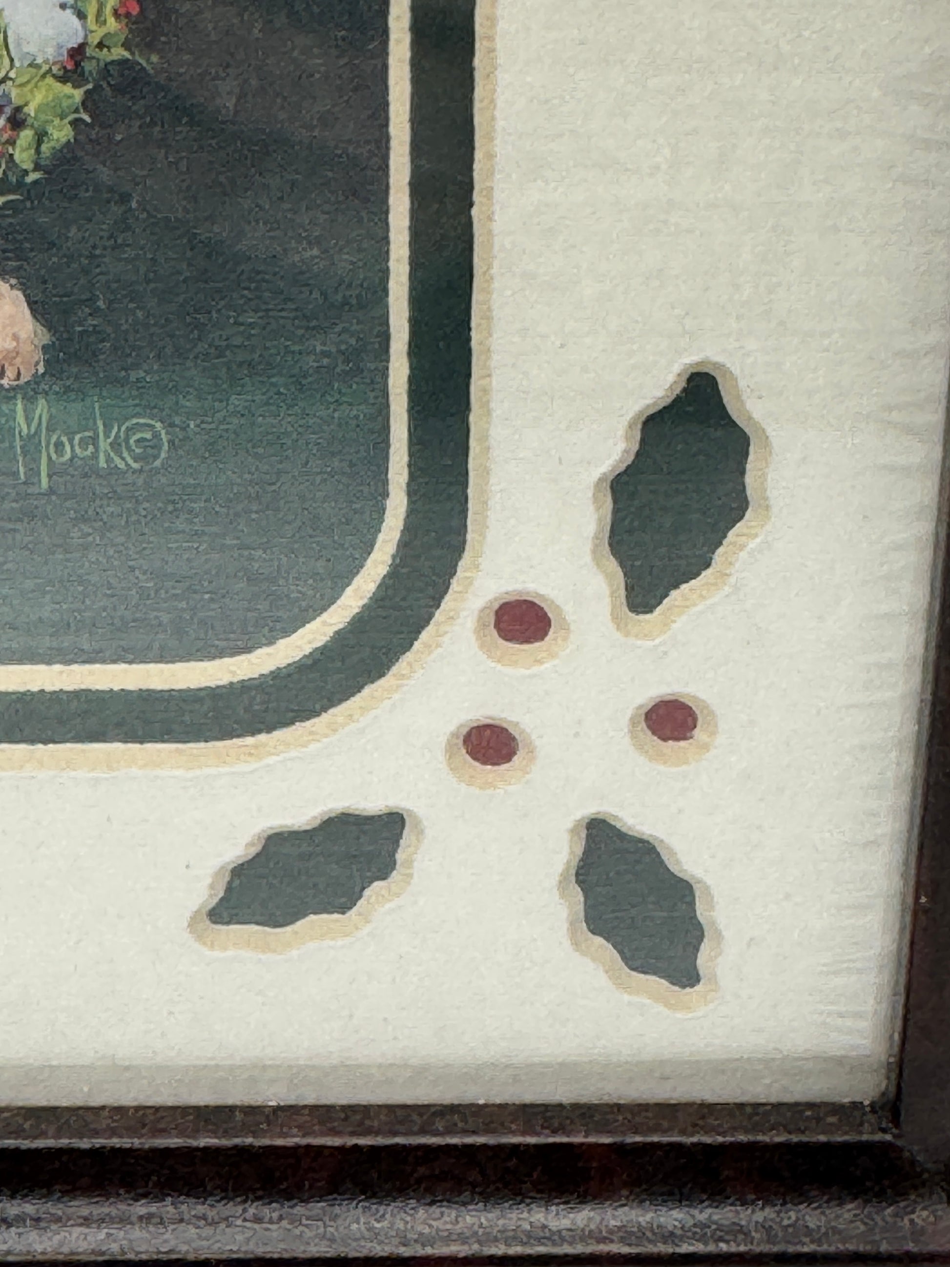 Originally released in 1995, some versions of this piece were part of a licensed reprint collection, making it a cherished find for collectors and lovers of traditional holiday art. Displayed in an 11.5" x 9.5" frame, this piece adds cozy, old-fashioned charm to mantels, shelves, or wall displays.