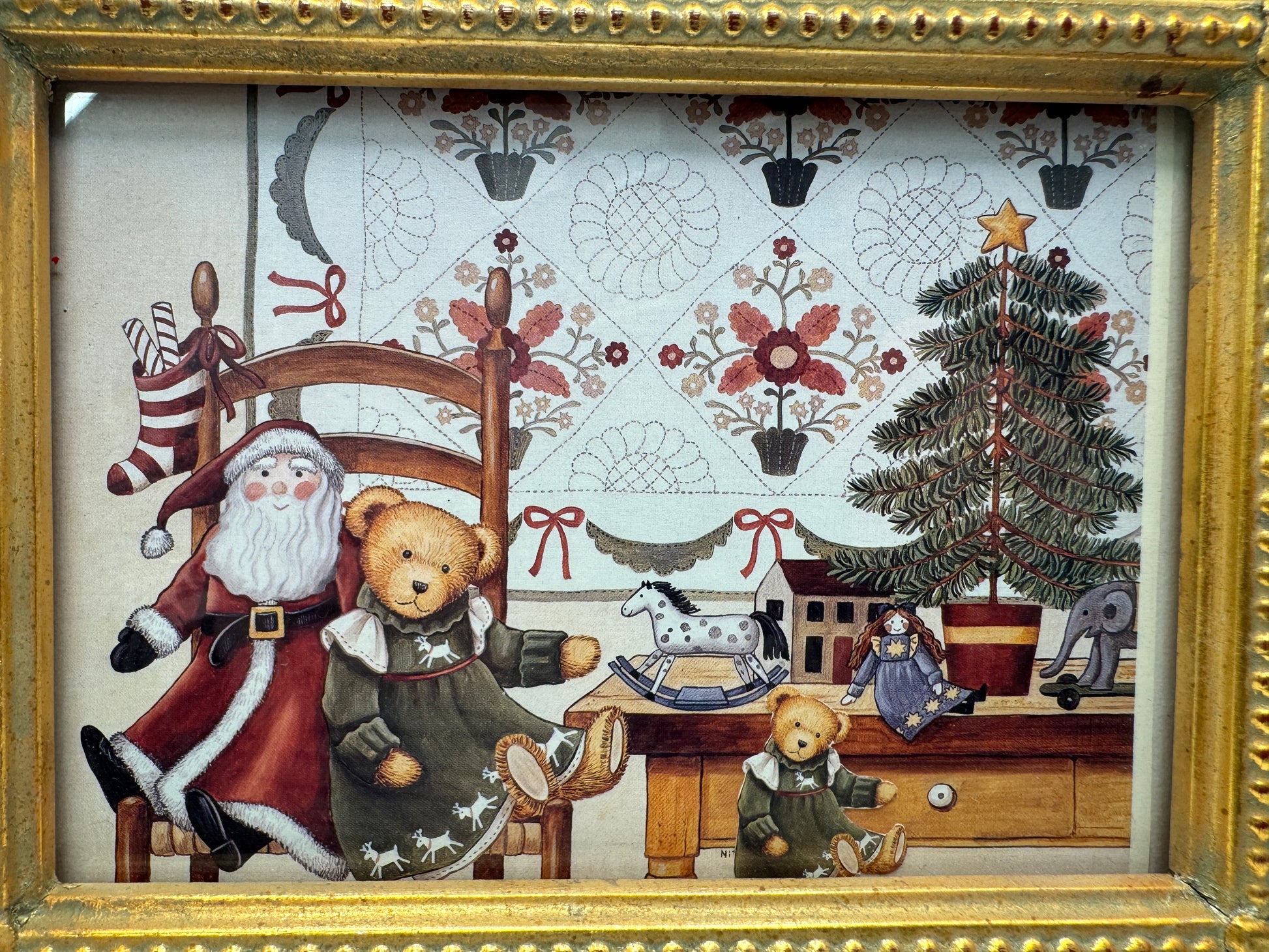 Framed Vintage Santa with Teddy Bears Christmas Print – 10.5" x 8.5"