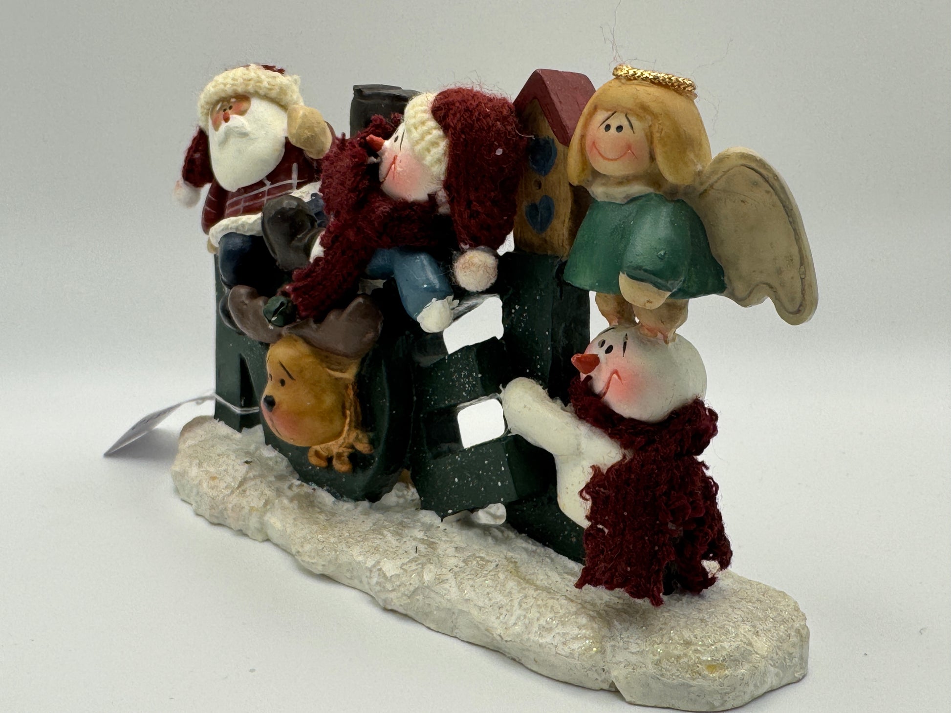 This charming vintage-style Giftco Christmas figurine spells out the word “NOEL” using a collection of festive holiday characters. Standing 6.5 inches tall, the piece features Santa Claus, a reindeer, a snowman, and an angel, each crafted with detailed resin or ceramic-style finishes. A nostalgic and cheerful decoration perfect for mantels, shelves, tiered trays, or vintage Christmas displays.
