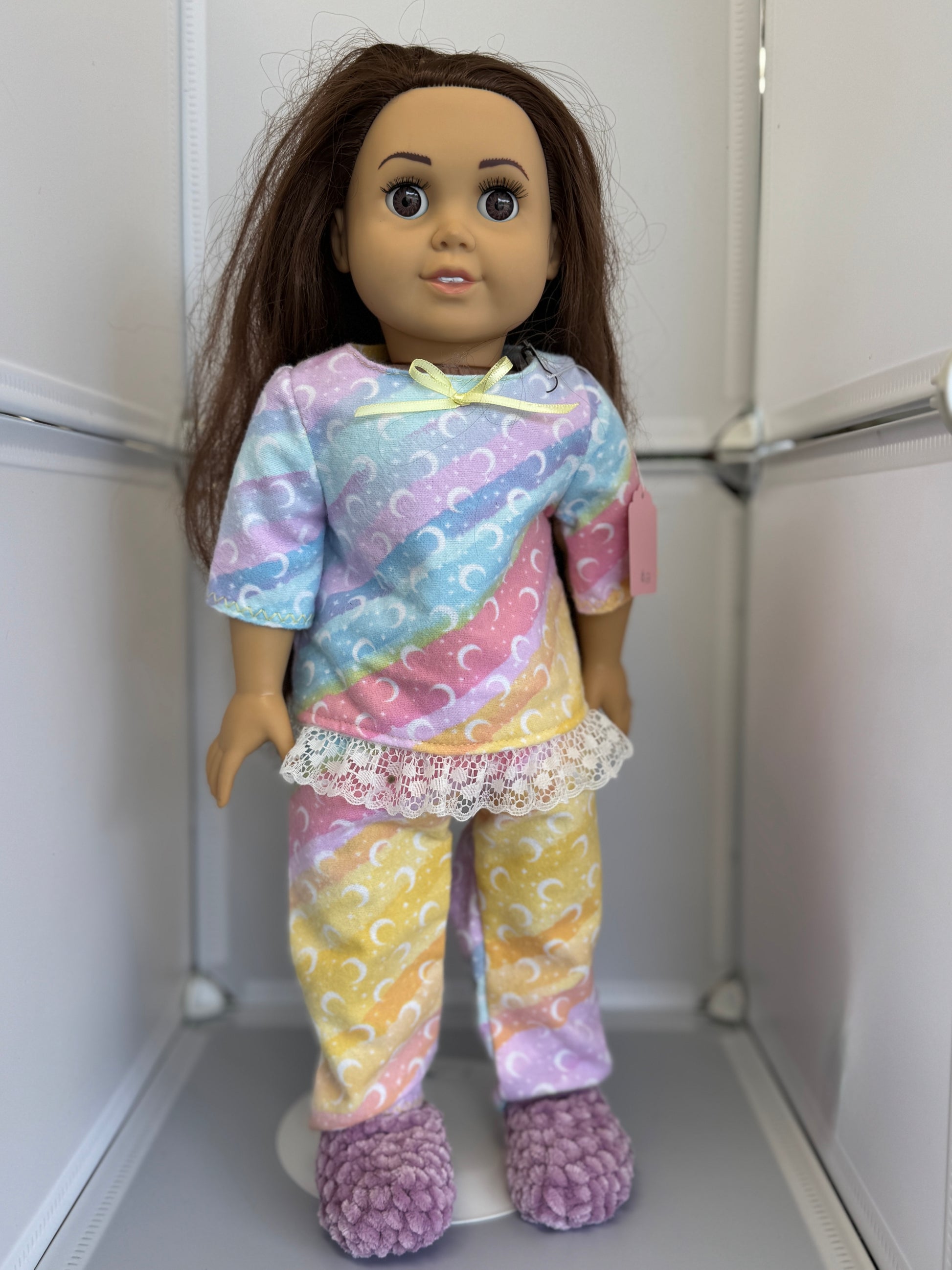 Handmade 18" Doll Clothes - Pajama set w/ Purple Slippers