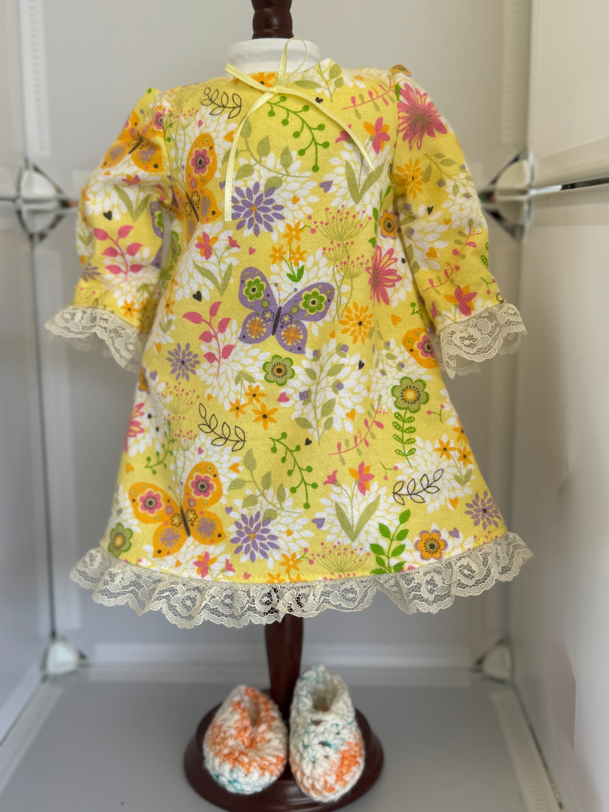 Handmade 18" Doll Clothes - Pajama set Yellow Floral Night Gown & Slippers
