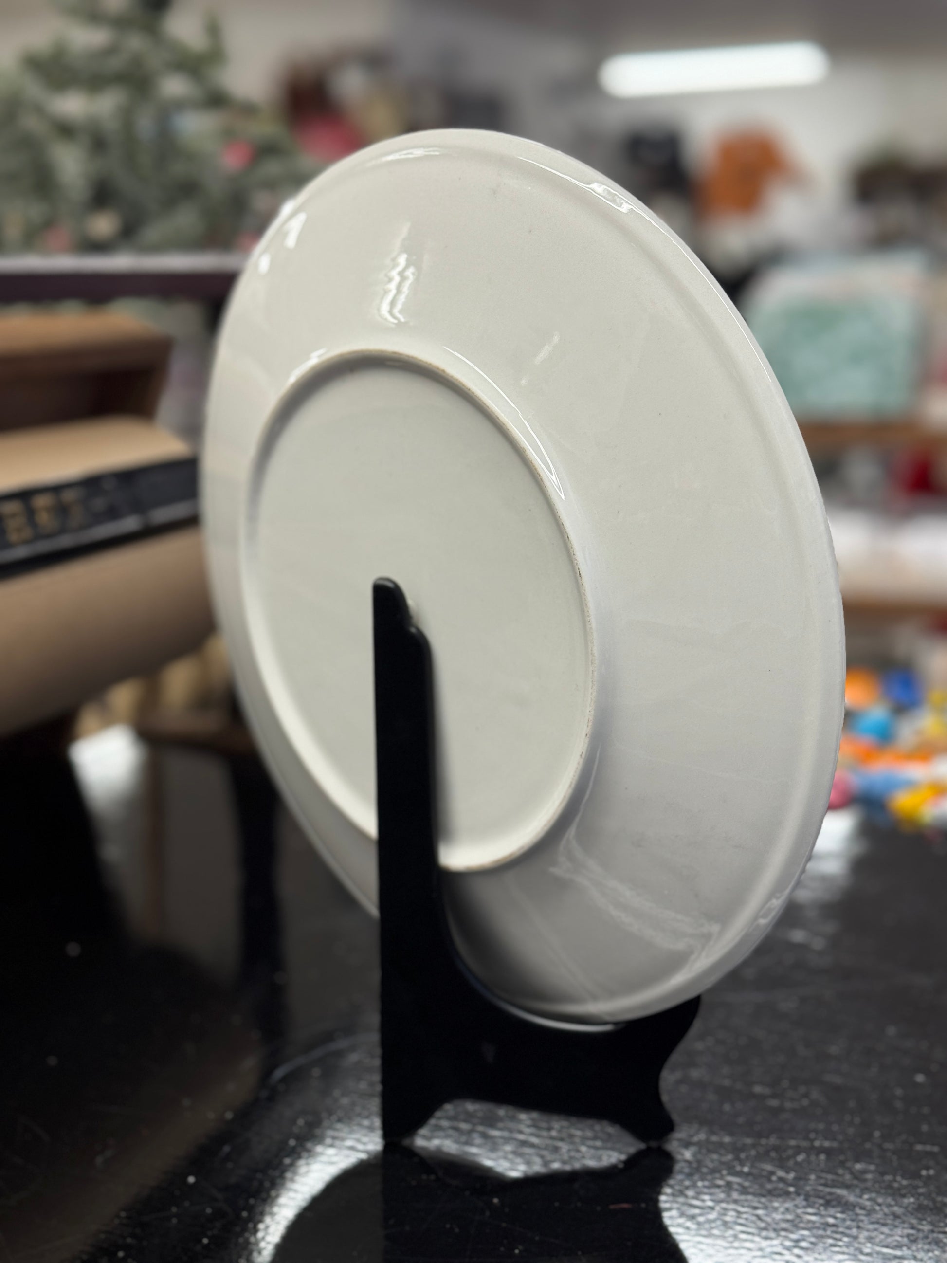 Perfect as a collectible display piece or as a cheerful serving platter for cookies, treats, and holiday gatherings, this plate adds a warm, traditional touch to winter décor. A wonderful find for collectors of vintage Christmas ceramics or fans of Possible Dreams holiday art.