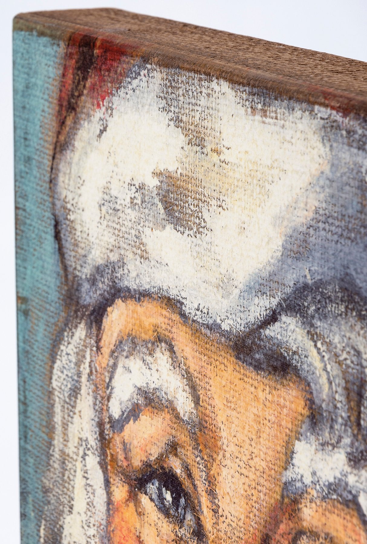 Add timeless holiday charm to your home with our Santa Box Sign from the Christmas Collection. This beautiful wooden box sign showcases a vintage-style Santa portrait replicated from original artwork painted on burlap canvas — creating a unique, textured look full of character and warmth.