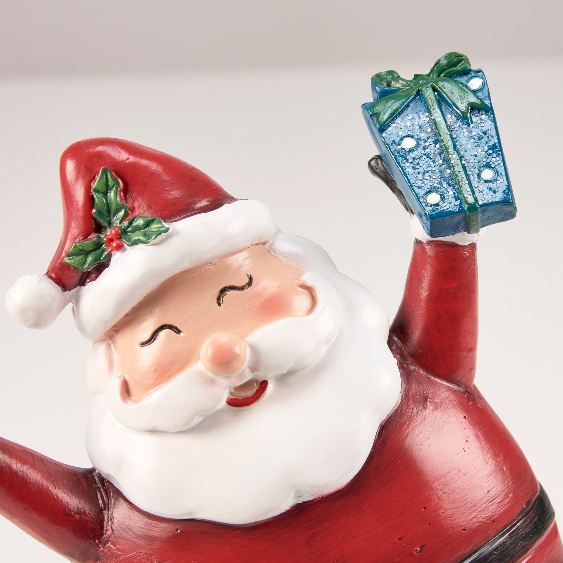 Bring whimsical holiday charm to your home with our Skating Santa Figurine from the Christmas Collection. This delightful decorative piece features Santa mid-skate, balancing playfully on candy cane–striped skates. Sculpted with fine detail and finished with a dusting of glitter, this jolly Santa shimmers with frosty elegance and festive cheer.