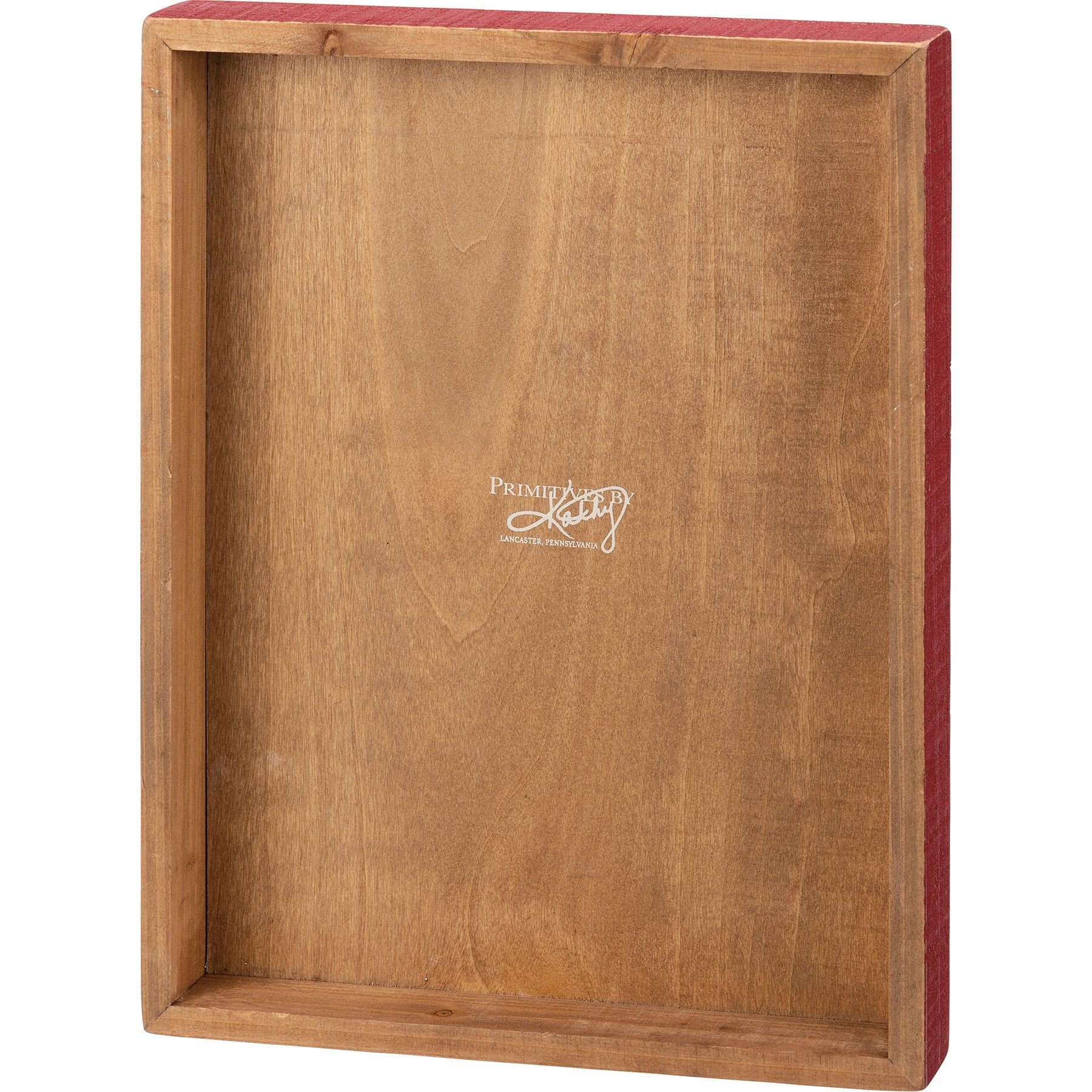 This festive piece includes red-colored sides for added contrast and charm. Designed to either hang easily on a wall or free-stand on a shelf, mantel, or tabletop.