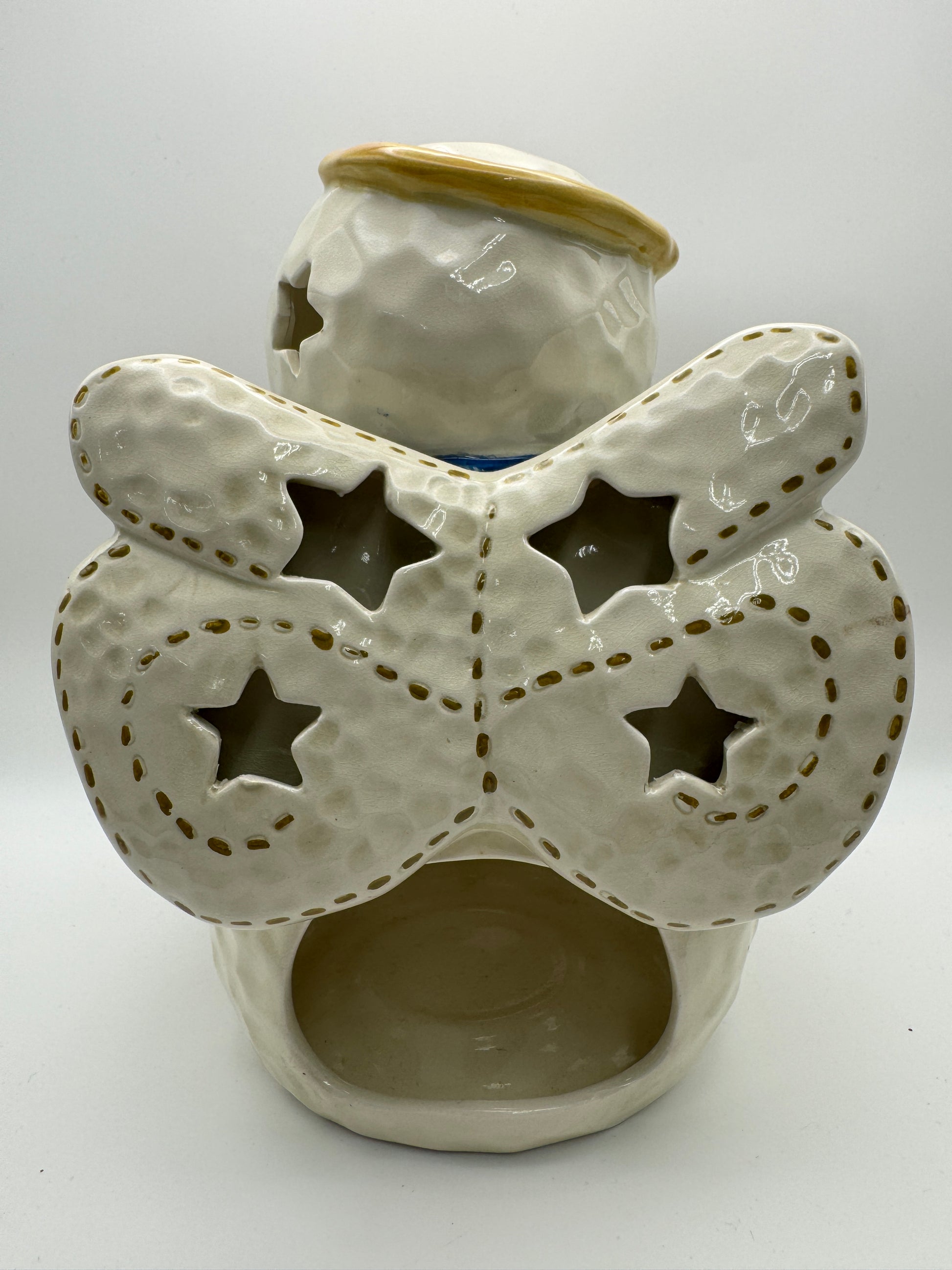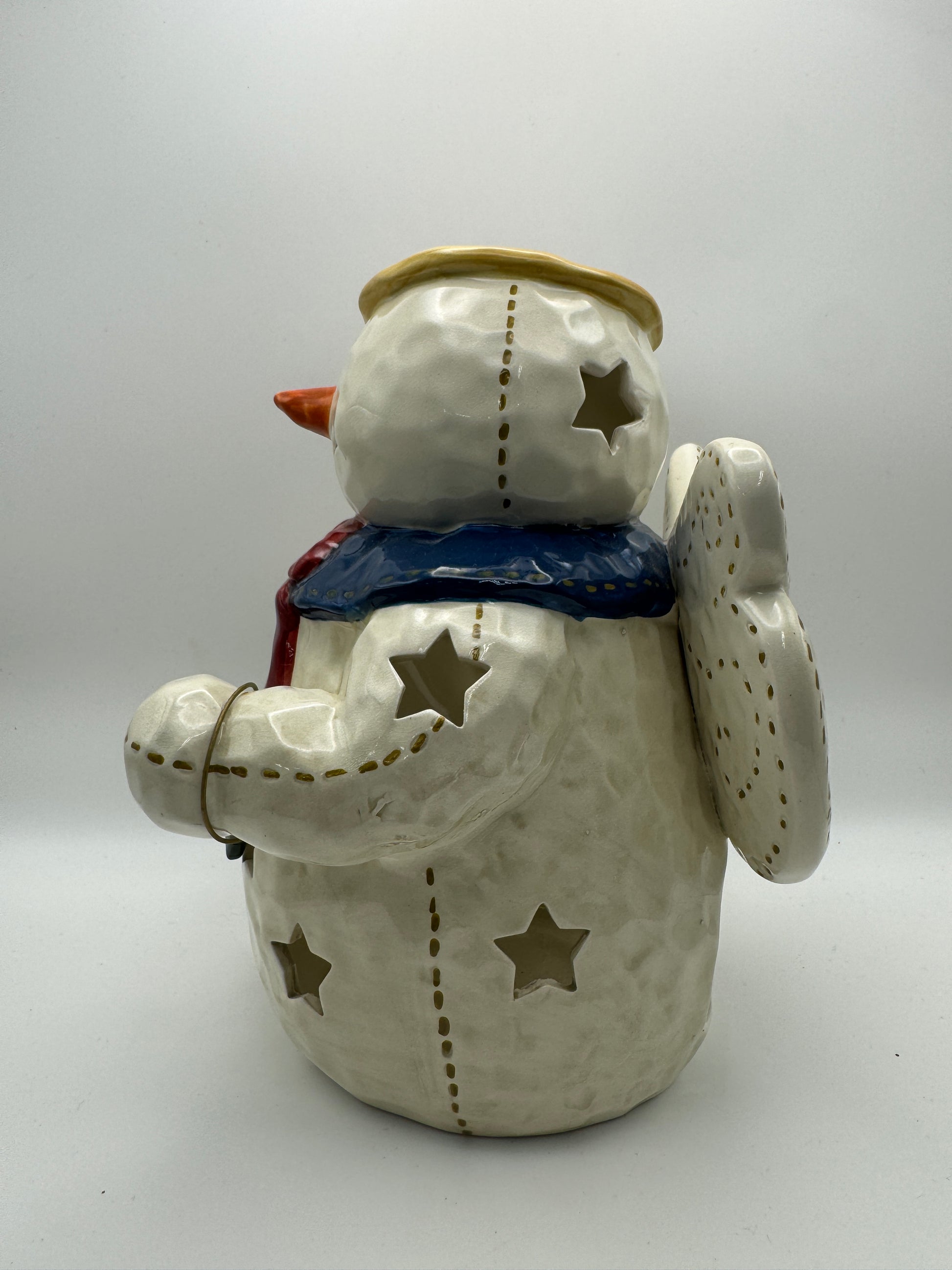Standing 7.5 inches tall, this festive snowman is designed to hold a single tealight candle, creating a warm, flickering light perfect for winter evenings. With cheerful hand-painted details and a classic Christmas look, this piece makes a wonderful accent for mantels, shelves, centerpieces, and holiday vignettes.