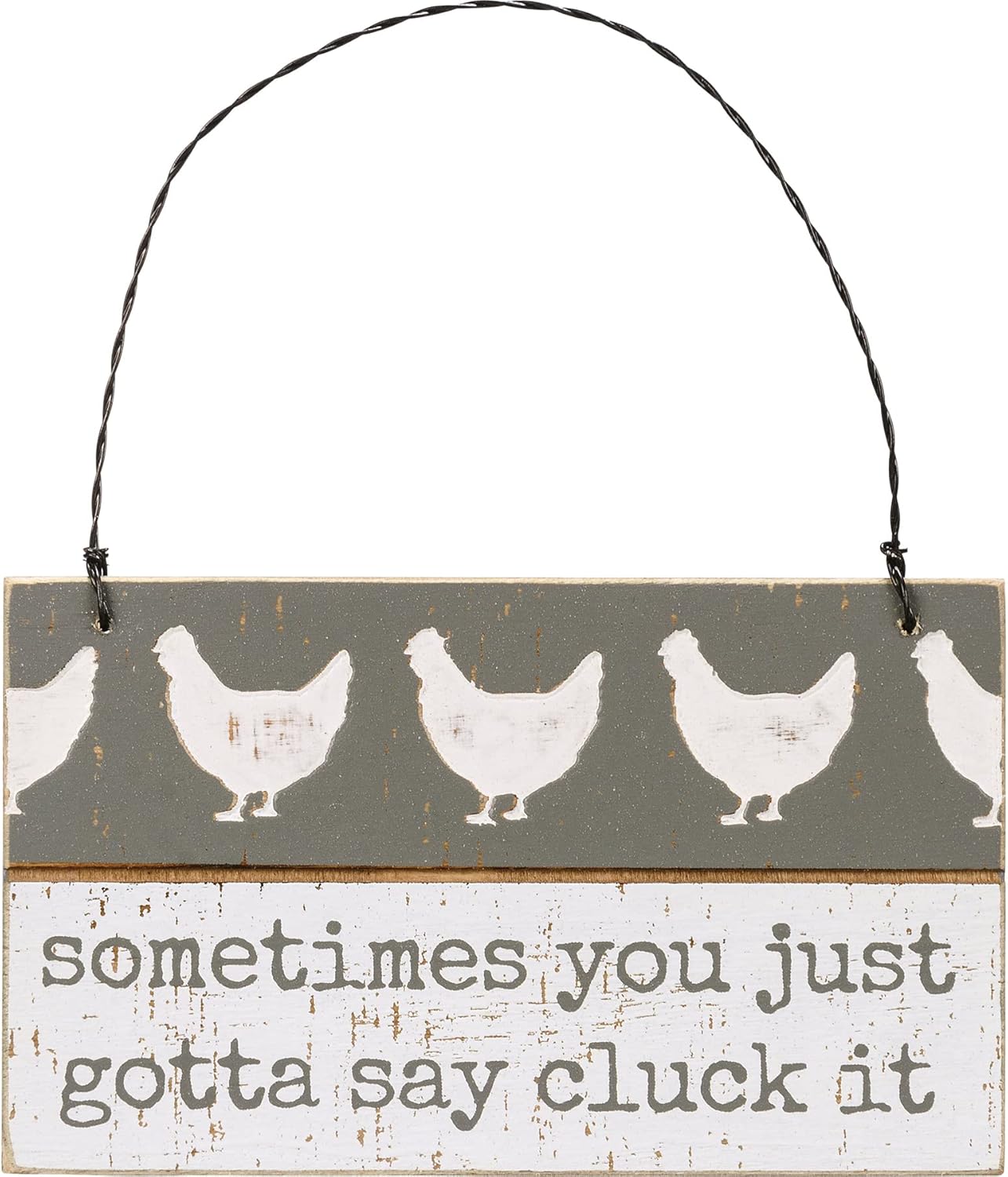 Add a little sass and farmhouse humor to your décor with our Sometimes You Just Gotta Say Cluck It Wood Sign Ornament. This slat wood ornament features a rustic gray and white finish with a playful chicken-themed sentiment that’s sure to bring smiles.