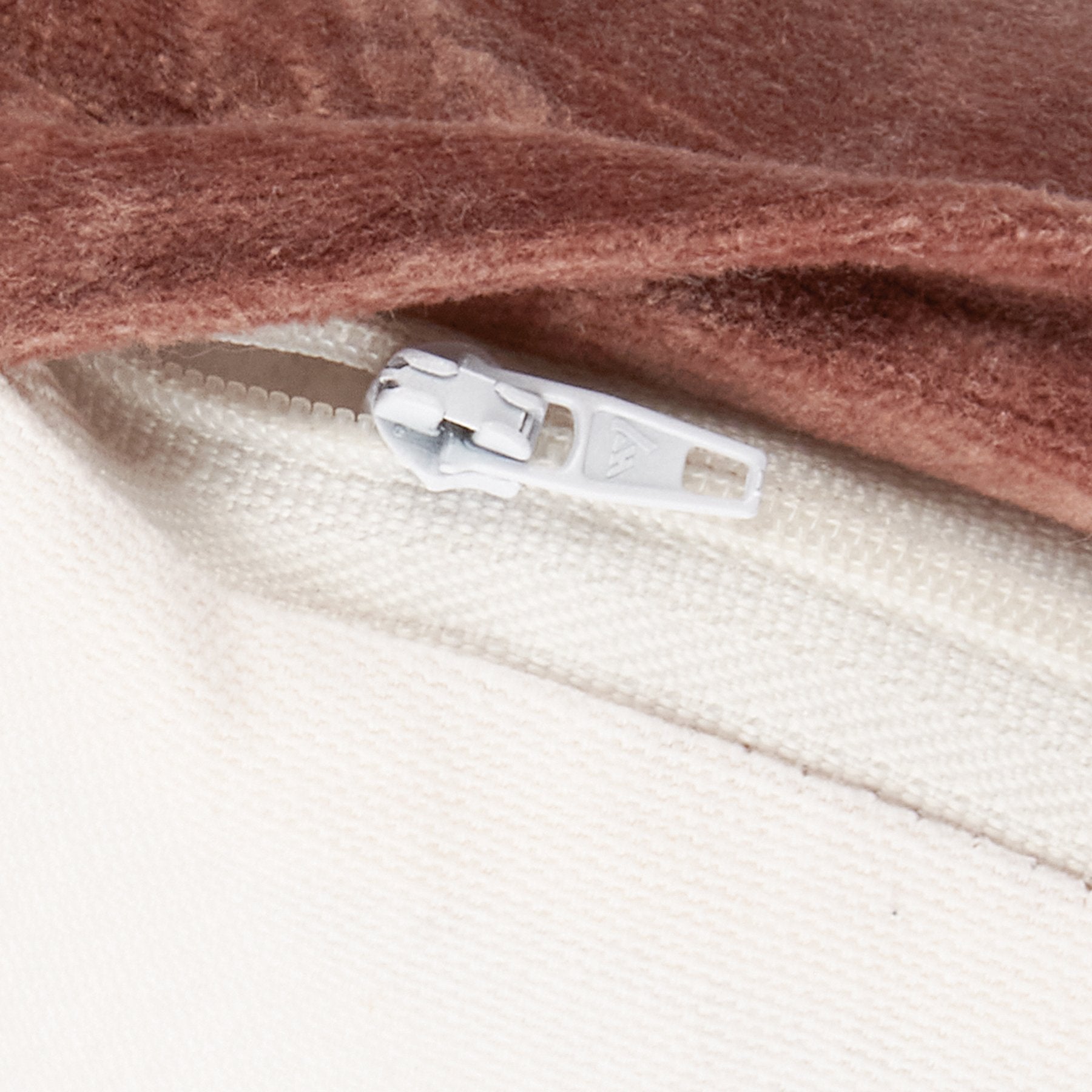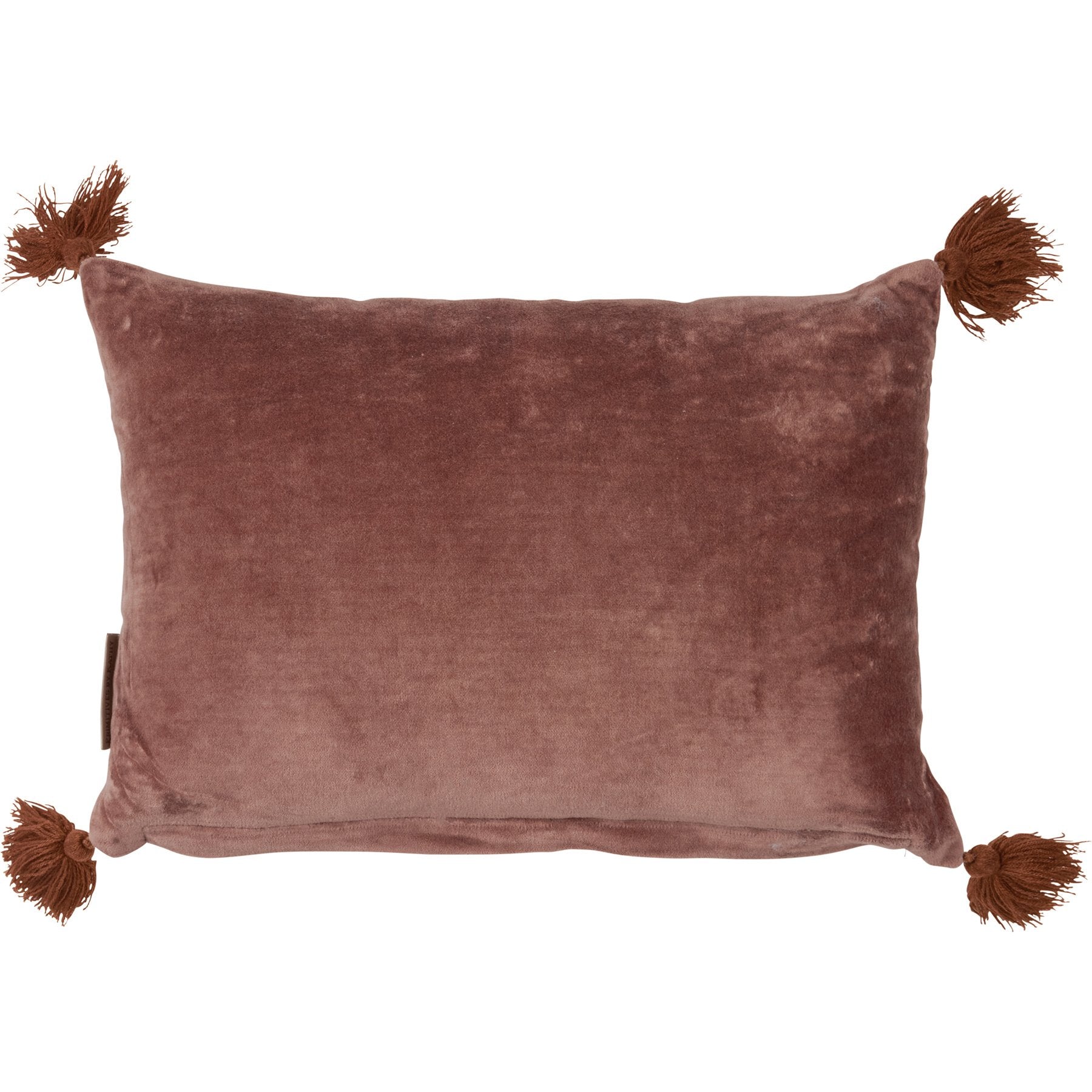 The back is finished in rich dark brown velvet with tassels on each corner for a touch of rustic charm. A hidden zipper allows for easy cover removal and cleaning, and the pillow is shipped vacuum-sealed for protection and convenient storage.