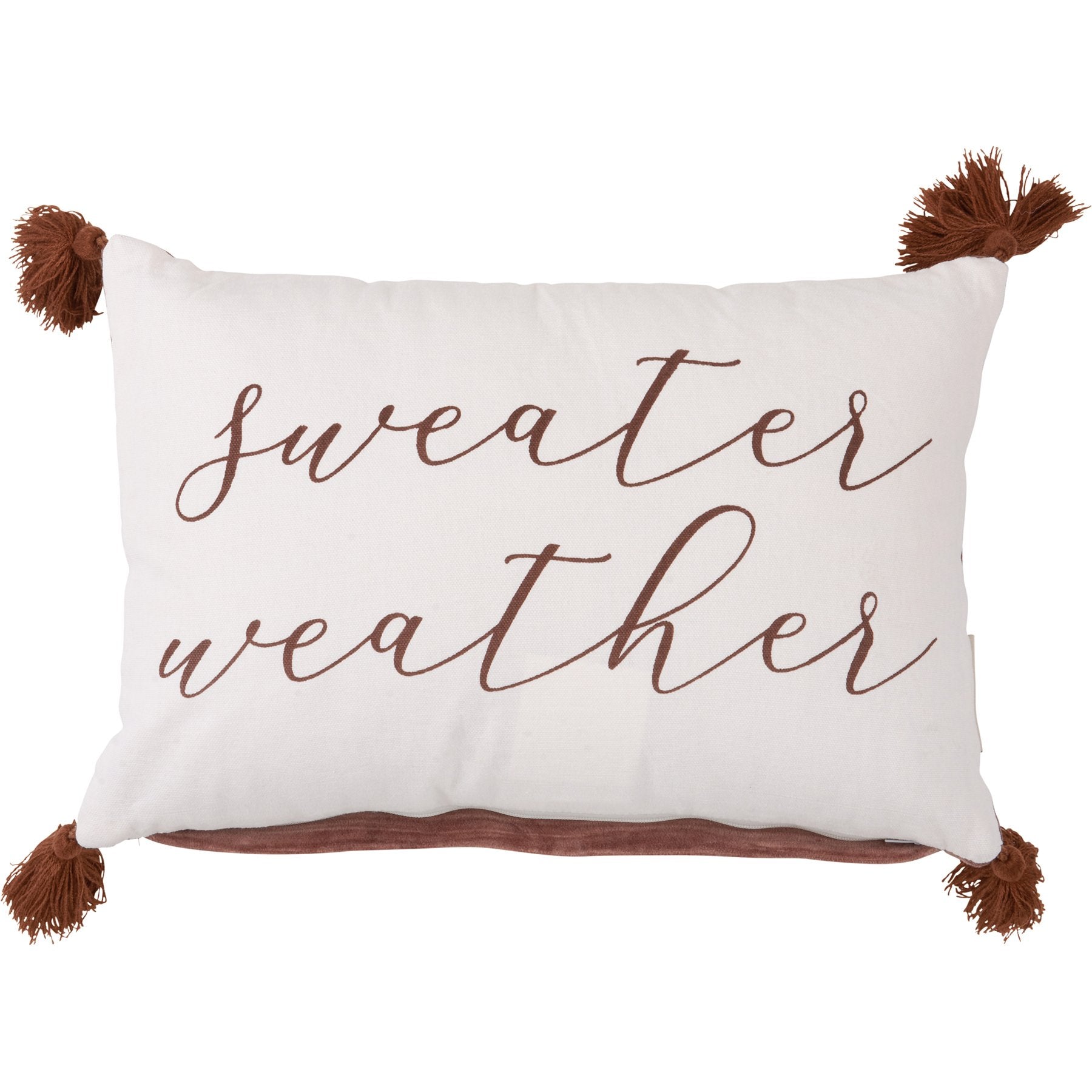 Cotton pillow with “Sweater Weather” embroidered sentiment