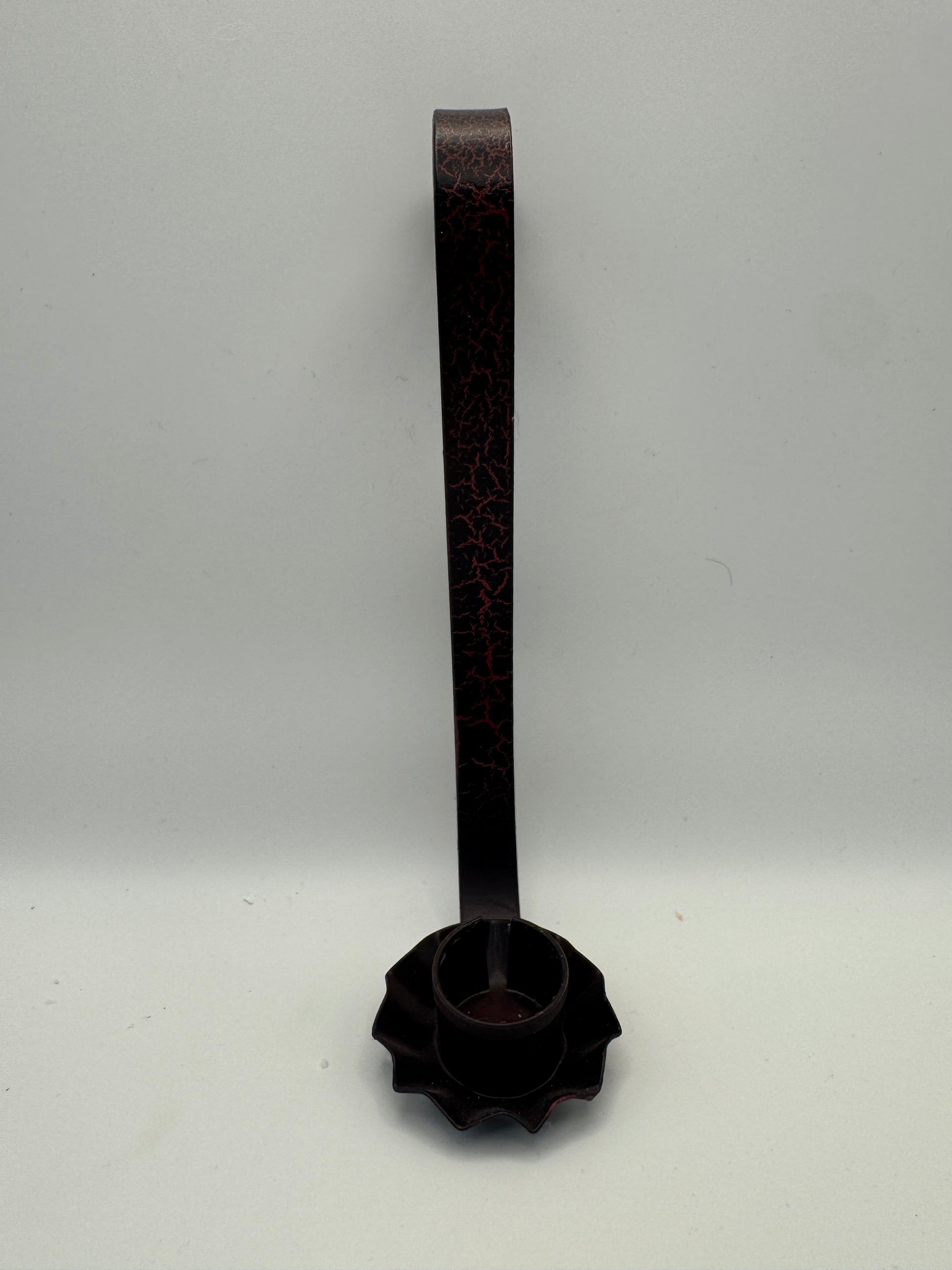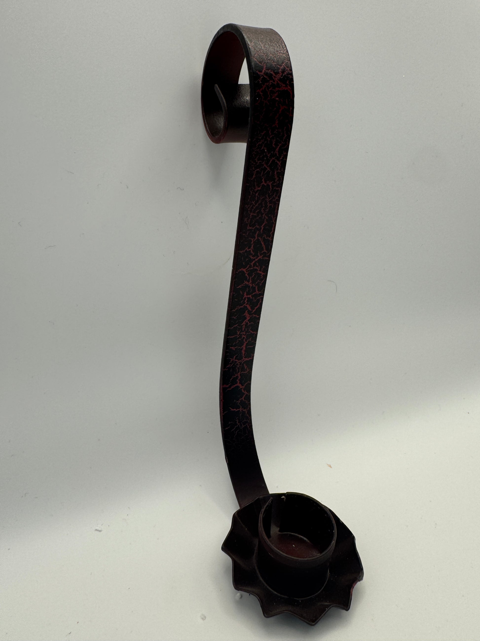 Add timeless elegance and warm ambiance to your space with this Wrought Iron Wall Sconce Candle Holder. Crafted from durable metal with a distressed, crackle-finish in deep red and black tones, this decorative piece combines rustic charm with classic scrollwork design.